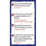 American Trivia Family Edition board game features mostly knowledge-based content rather than trivial tidbits. American Trivia Family Edition cards have two sides - one with easier questions (Junior side) and the other with more difficult questions (Expert side), allowing families of all ages to play the board game together.  The board game includes 1,440 expert level questions in four categories (geography, history, arts, general) and 1,080 junior level questions in three categories (geography, history, general).This best selling board game is a fantastic party game for anyone, so don't be fooled by the name!