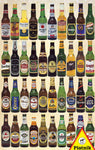 Have a drink. A collage of different beer bottles.