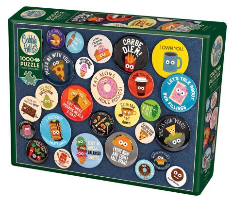 Buttons that say it all with flare! A super fun 1000 piece puzzle. A collection of punny button-pins featuring cartoon food.