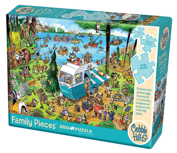 Fish for a t-bone, roast marshmallows with a fox, enjoy tea time on the trailer and all the whimsies from the Call of the Wild. With three different sized pieces from large to medium and small, hands of all sizes and puzzlers of varying skill will be able to work together to complete this fun Family Piece 350 image.