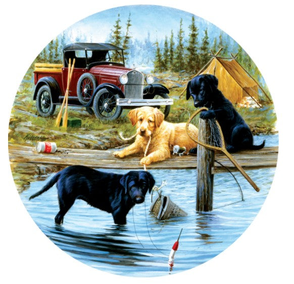 These three are having a wonderful time on the camping trip! 500 pc puzzle - Round shape 19"x19" - Artist