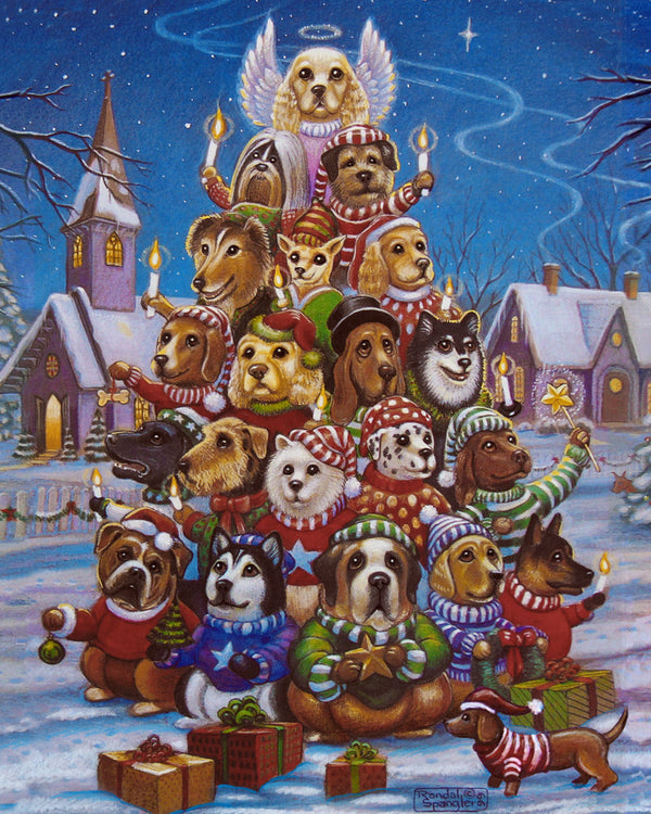 Can you spot all of the different dog breeds in this fun Christmas puzzle? These beautifully illustrated jigsaw puzzles are perfect for passing the time in anticipation of Christmas. They also make great gifts for kids and adults alike! All of Vermont Christmas Company's signature puzzles are made in the United States with recycled materials ensuring quality craftsmanship. Puzzle includes 1000 pieces and measures 30"x24" when completed. Artwork by Randal Spangler.