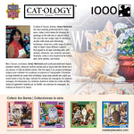 These MasterPieces 25" x 25" 1,000pc Cat-ology Puzzles by Jenny Newland featuring Blossom the cat in his natural environment. Through their remarkable eyes, Jenny Newland's precious puppies and kittens are brought to life with colorful detail and sweet expressions. Jenny is able to capture the personalities of her adorable subjects so well, because she and her family are surrounded at home by four dogs, fifteen cats and various farm animals.
