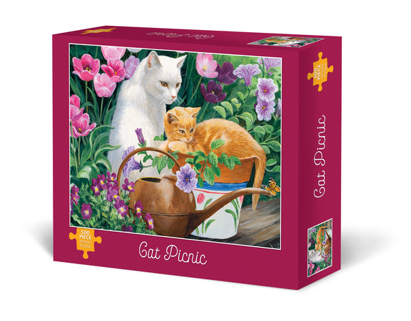 Surrounded by sweet florals and lush green leaves, these curious kitties are entranced by their winged guest, giving puzzlers plenty to focus on while they reconstruct this summery scene by artist Persis Clayton Weirs.