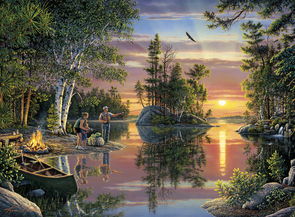 This 1000-piece jigsaw puzzle by renowned artist Kim Norlien is titled Catching Memories. A beautiful image of a summer day spent enjoying nature and fishing comes to an end while...