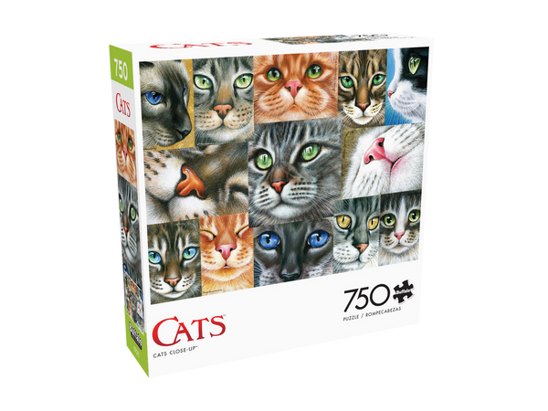 This 750-piece jigsaw puzzle, Cats Close-up, is part of the Cats Series by Buffalo Games. A collage of adorable close-ups of different cats’ faces makes up the image of this...