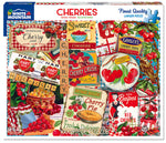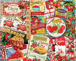 Cherries, Cherries, and more Cherries. This puzzle reminds us all of summer in Grandma's kitchen baking pies, making jams or just having a bowl full of cherries to snack on while she made her yummy goodies. From cakes to soda, artist Lois B Sutton combines them all to take us on a delicious trip back in time with this 1000-piece jigsaw puzzle.