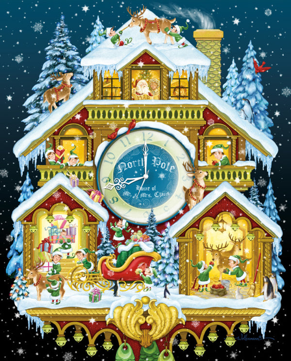 Everyone is abuzz in the North Pole! These beautifully illustrated jigsaw puzzles are perfect for passing the time in anticipation of Christmas. They also make great gifts for kids and adults alike! Fully interlocking and randomly shaped pieces make for a pleasant puzzle building experience. Each jigsaw puzzle is produced on thick, quality board perfect for mounting and framing. This puzzle includes 1000 pieces and measures 30"x24" when completed. Artwork by Randy Wollenmann.
