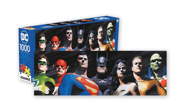 When a problem too tough for a lone hero to solve arises, the Justice League answers the call! Enjoy this 1000 piece puzzle Featuring Superman, Batman, Wonder Woman, Aquaman, Green Lantern, The Flash and Martian Manhunter.