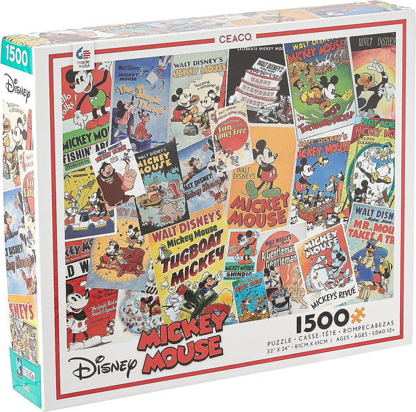 This 1500 piece Disney puzzle features a collage of posters for classic Disney films and Mickey Mouse cartoons.