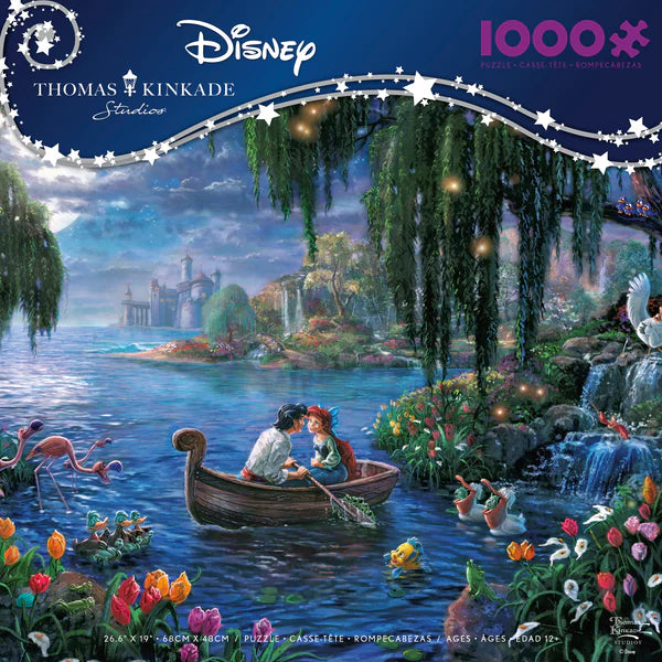 This 1000 piece Disney Thomas Kinkade puzzle features Ariel and Prince Erica about to share a kiss in a rowboat. Flounder is swimming along side them while Sebastian conducts a...
