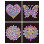 Bring color and calm to your craft time with the Diamond Dotz Neon Mandalas Diamond Painting Kit. This set features four mesmerizing mini designs - a heart butterfly dragonfly and layered mandala - each bursting with vibrant neon tones against a rich black background. Perfect for fans of Diamond Painting Kits for Adults Diamond Art Kits and colorful diamond painting this project is fun fast and fantastically satisfying!