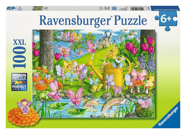 Little girls will love this puzzle that features fairies gathered around, enjoying themselves in garden full of beautiful colored flowers, frogs and fish in a Fairy Playland.