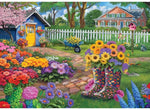 Step into a cheerful cottage garden bursting with color, where a pair of patterned rain boots overflows with sunny blooms. Extra-thick, oversize pieces are easy to grasp and click together with a satisfying fit. The full reference image is printed inside the box lid, and the puzzle can be completed and stored right in the box—an uplifting family activity that supports focus, patience, and fine motor skills.
