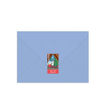 The greeting card design captures the coziness and charm of a snowy Christmas season.