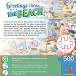Feel the ocean breeze and bask in the sunshine with our 500-piece Greetings from the Beach puzzle! This vibrant collage captures the ultimate beach day, filled with everything you love...