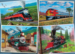 Four iconic trains collaged together showcasing its beauty and the American landscape in a 1000 piece puzzle by artist Mike Bennett.