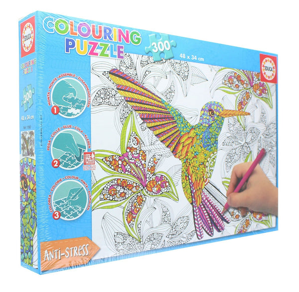 Reduce the level of stress in your life while assembling this intricately designed hummingbird mandala which can be colored in afterwards! Free glue included.