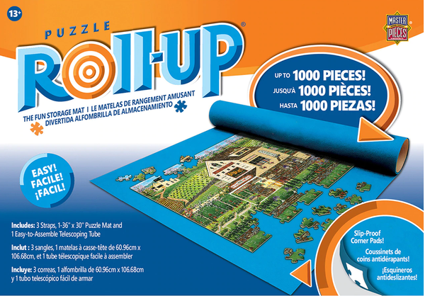 The smart way to store your puzzle! This fun storage mat fits up to 1000 pieces. Roll-up today...Puzzle again tomorrow!