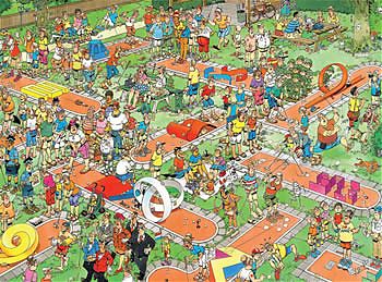 This zany take on a golf course is illustrated by Jan Van Haasteren