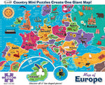 Country mini puzzles create one giant map! Hours of family fun! Discover all 37 fun shaped pieces! 850 Piece Puzzle.