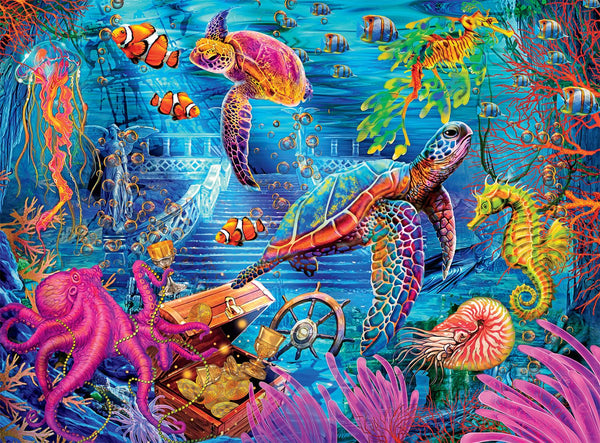 This 1,000 piece puzzle titled “Colorful Ocean”, is part of the Marine Color puzzle series by Buffalo Games. Capture a beautiful underwater haven, occupied by colorful marine life. Octopus, seahorses, jellyfish and other nautical creatures swim among the deep sea, in this vibrant jigsaw puzzle.
