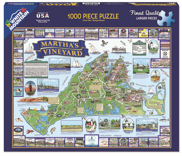 This island south of Cape Cod is primarily known as a summer colony and is accessible only by boat or air. Enjoy a fantastic overview of Martha’s Vineyard including an illustrated map featuring its most famous attractions, historic buildings, street names, and more; filled with fascinating fact about the Massachusetts island.