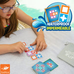 Take Match Madness Flip wherever you go! Both players take a set of 4 double-sided acrylic tiles and flip a card. Race to match the pattern on the card to win! This travel edition features 100 brand-new puzzles on waterproof cards, 8 waterproof tiles, and a convenient waterproof travel bag for on-the-go fun!