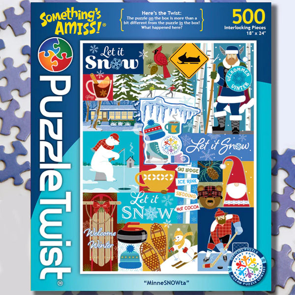 The Twist:  The puzzle on the box is more than a bit different from the puzzle in the box!  What happened here? A jigsaw puzzle that takes a fun view of what hearty Minnesotans...