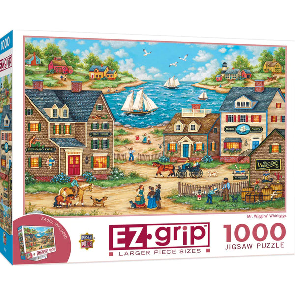 A scene of a quiet New England down from the early 20th century, complete with horse-drawn carriages, sailing ships, and whirligigs as the hot new commodity.The EZ-Grip technology used to...