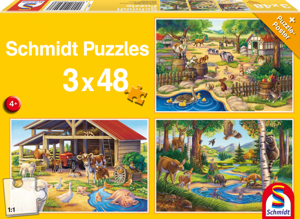 3 different puzzles that feature animals.