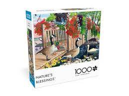 Nature’s Blessings is a 1000-piece jigsaw puzzle from Buffalo Games. This depiction of nature’s blessings includes geese, ducks, swans, cardinals, blue jays, blue birds, a goldfinch, a herein, flowers, butterflies...