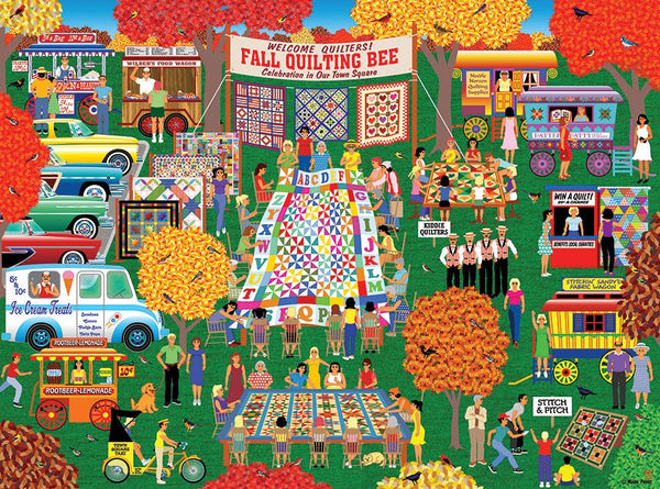 The town square is abuzz with activity as the Fall Quilting Bee comes around once again, with a barbershop quartet to provide background music and plenty of food trucks to keep up the quilting until the day's end.