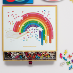 The Jonathan Adler 750 Piece Rainbow Hand Shaped Foil Puzzle from Galison features Adler’s Bright Catch and the boldest colorway there is: the rainbow!