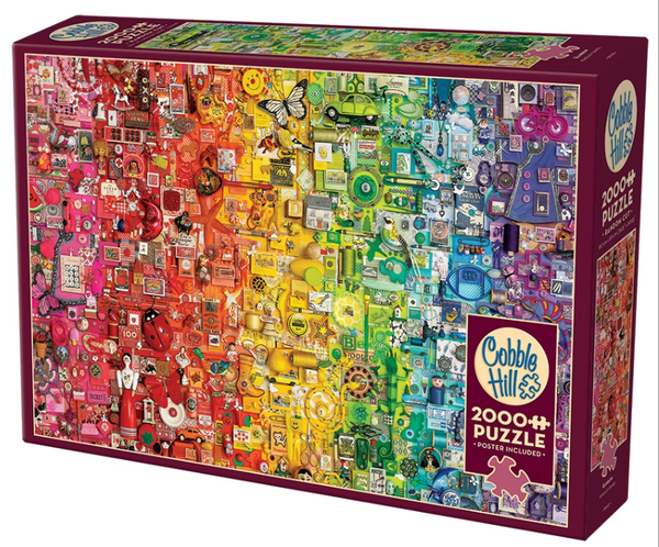 Rainbow is an exciting addition to Cobble Hill's 2000 piece puzzle collection. It is a culmination of the Rainbow Collection series of seven 1000 piece puzzles that align together to create one seamless horizontal collage. Now, puzzlers can enjoy all the colours of the rainbow in one expansive puzzle. If you enjoy this collage, be sure to look for other great puzzles from Victoria, BC artist, Shelley Davies.