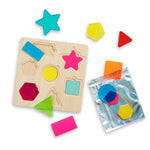 Stack the shapes and discover color combinations!  Learn about colors & shapes.Stack the shapes to mix colors.Turn the shapes into stencils.Improves problem-solving skills. Includes: 15 pieces and 1 bag.