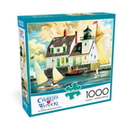 Rockland Breakwater Light is a wonderful 1,000 piece jigsaw puzzle by talented artist Charles Wysocki. These sailors and fishermen are on the coastal waters of the Northeastern United States. Today, they will be out at sea enjoying the ocean views.
