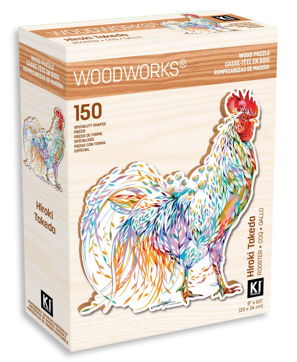 150 pieces. Irresistibly cute, this adorable shaped rooster jigsaw puzzle is made with wooden pieces.