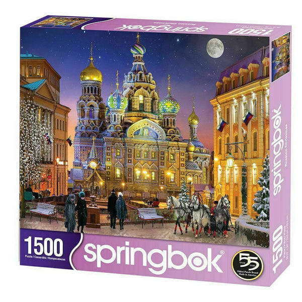 This 1000-piece holiday puzzle depicts both a dramatic and yet serene moment of Christmas in St. Petersburg.
