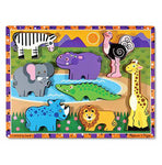 Safari Animals is a Chunky Puzzle that is made from sturdy wood construction. Pieces have pictures underneath and also stand up for pretend play.