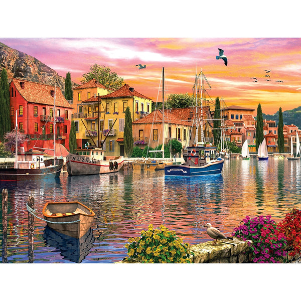 This puzzle of Sailor's Glow features a serene riverside landscape, with boats on the water, colorful homes lined alongside the river, and a lovely sunset in the background. The puzzle...