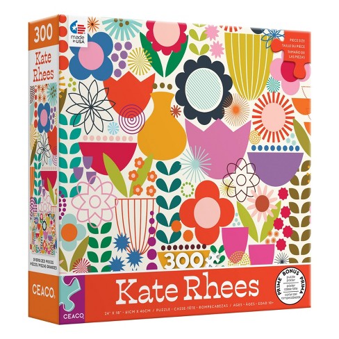 This 300 Piece Puzzle depicts a modern art painting of flowers titled Scandi Flowers by Kate Rhees