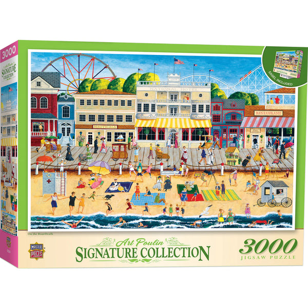 MasterPieces 32" x 45" 3000pc Premium Puzzles features the boardwalk people gather for some fun and games on a Saturday afternoon. Enjoy the festivities along the seaside with a challenging...