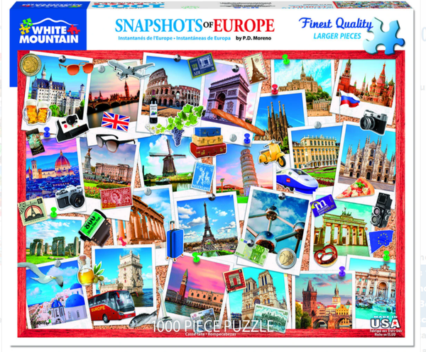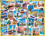 This 1000 piece collage from designer P.D. Moreno. Find your favorite city, whether it's Venice, Berlin, Rome, Athens, London, Paris, Pisa, Moscow, wherever!