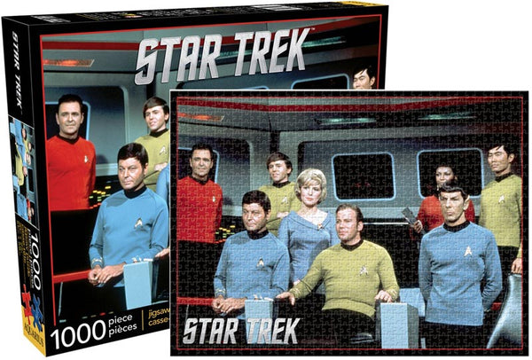 This puzzle features the full main cast of Star Trek on the bridge of the U.S.S. Enterprise.