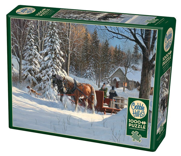 A beautiful winter means the Sugar Shack Horses are back to work pulling the sleigh to and fro to tap the maple trees.  This 1000 piece puzzle is random cut...