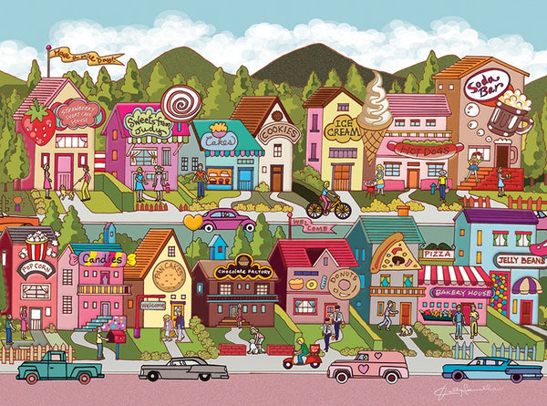 Life is simple and sweet in Sweet Tooth County. Its a delicious day for all.Grab a cup of coffee and enjoy the treasure from Kelly Samuelle. Fully interlocking unique shaped pieces are a joy to put in place.
