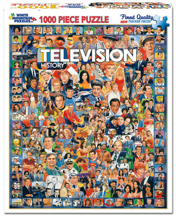 Here is the ultimate TV trivia jigsaw puzzle by artist James Mellett! This jigsaw features a colorful collage of more than 250 TV stars and unforgettable moments in American television.