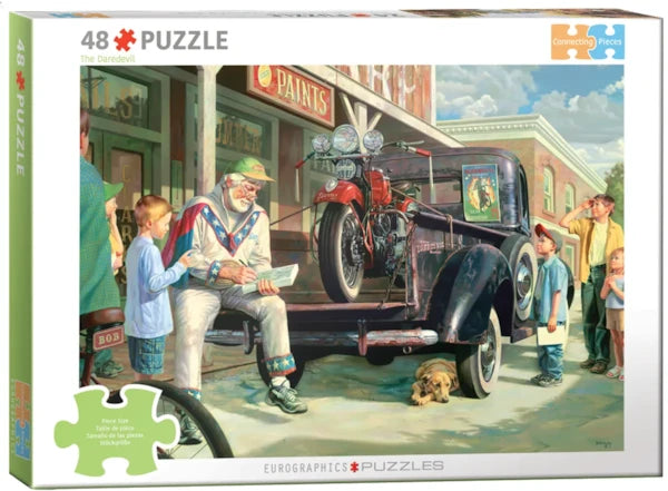 Rev up the nostalgia with this heartwarming scene of a retired stunt rider, his vintage red motorcycle, and star-struck kids in a small-town street. Extra-thick, easy-grip pieces support focus, dexterity,...