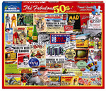 What better way to spend a rainy afternoon or enjoy hours of family fun than with this puzzle that displays scenes of sweet nostalgia from the fabulous decade of the 1950's!